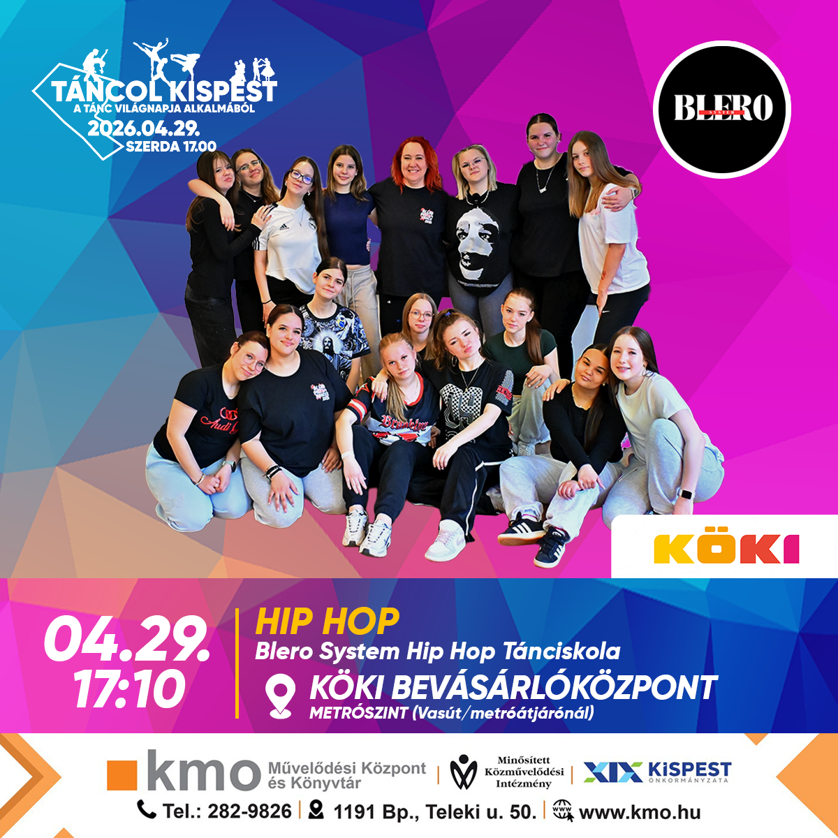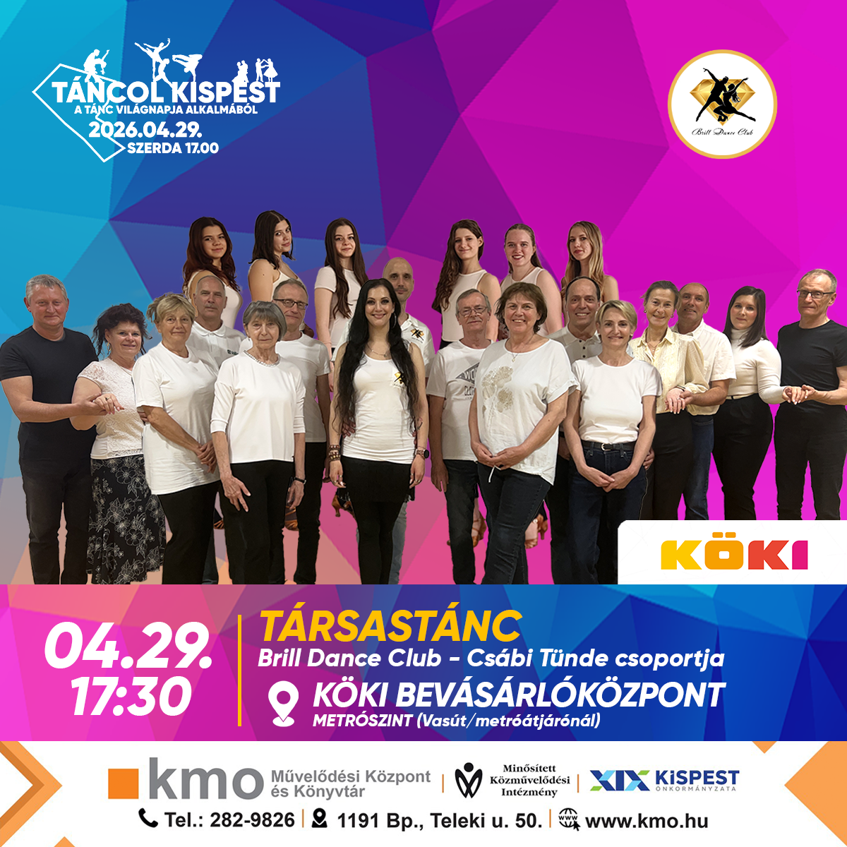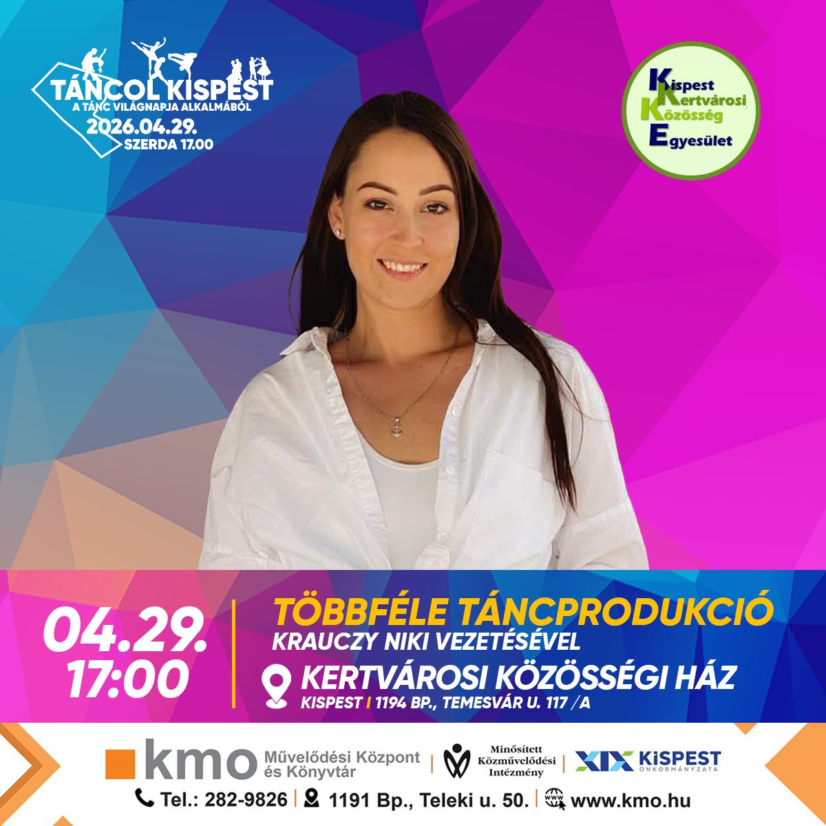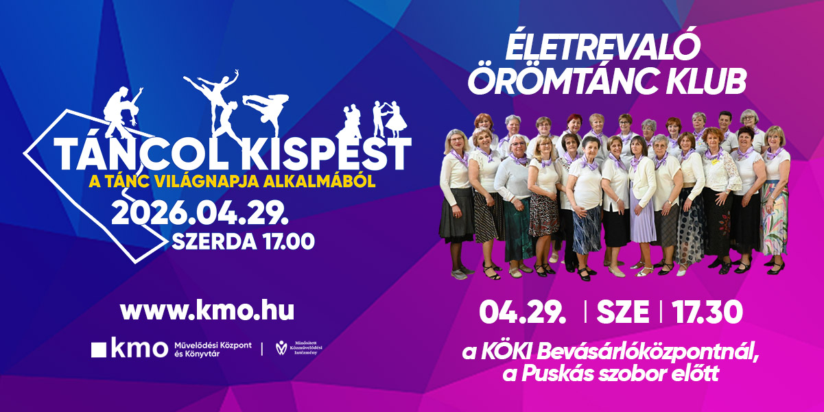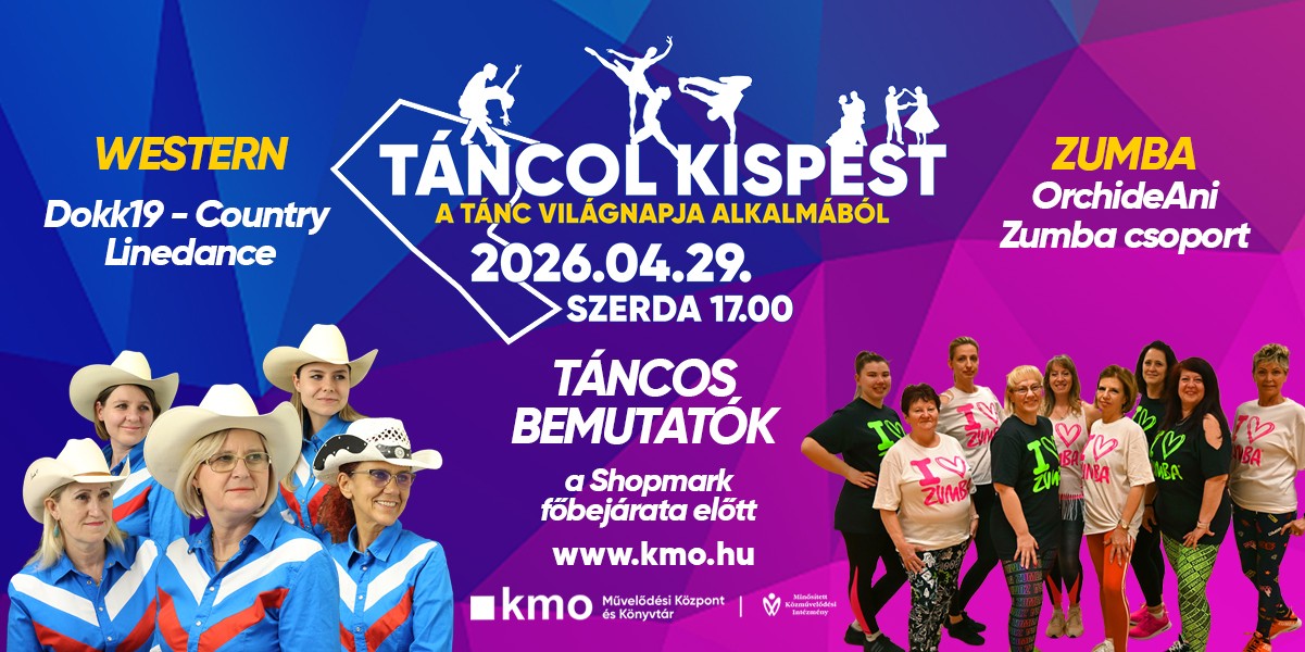 Második alkalommal mozdul meg Kispest 2026 áprilisban, a tánc ünnepén. A TÁNCOL KISPEST rendezvényünkön a Tánc világnapja alkalmából április 29-én, szerdán 17.00 és 20.00 között ismét a mozgásé és a ritmusé lesz a főszerep. Látványos bemutatók, közös tánc és felszabadult hangulat vár mindenkit, aki szeretné együtt ünnepelni a tánc sokszínű világát – immár másodszor Kispesten.