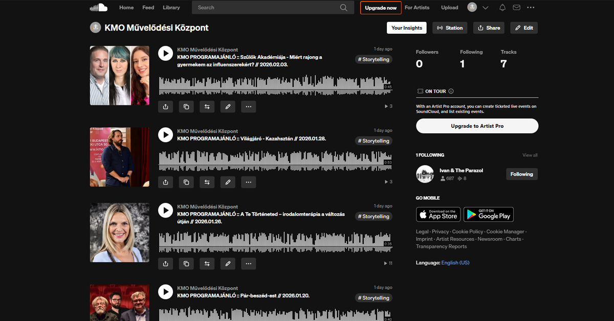 Keresse a KMO SoundCloud-csatornáját, hallgassa meg programajánlóinkat, és tartson velünk – hogy egyetlen élményről se maradjon le.