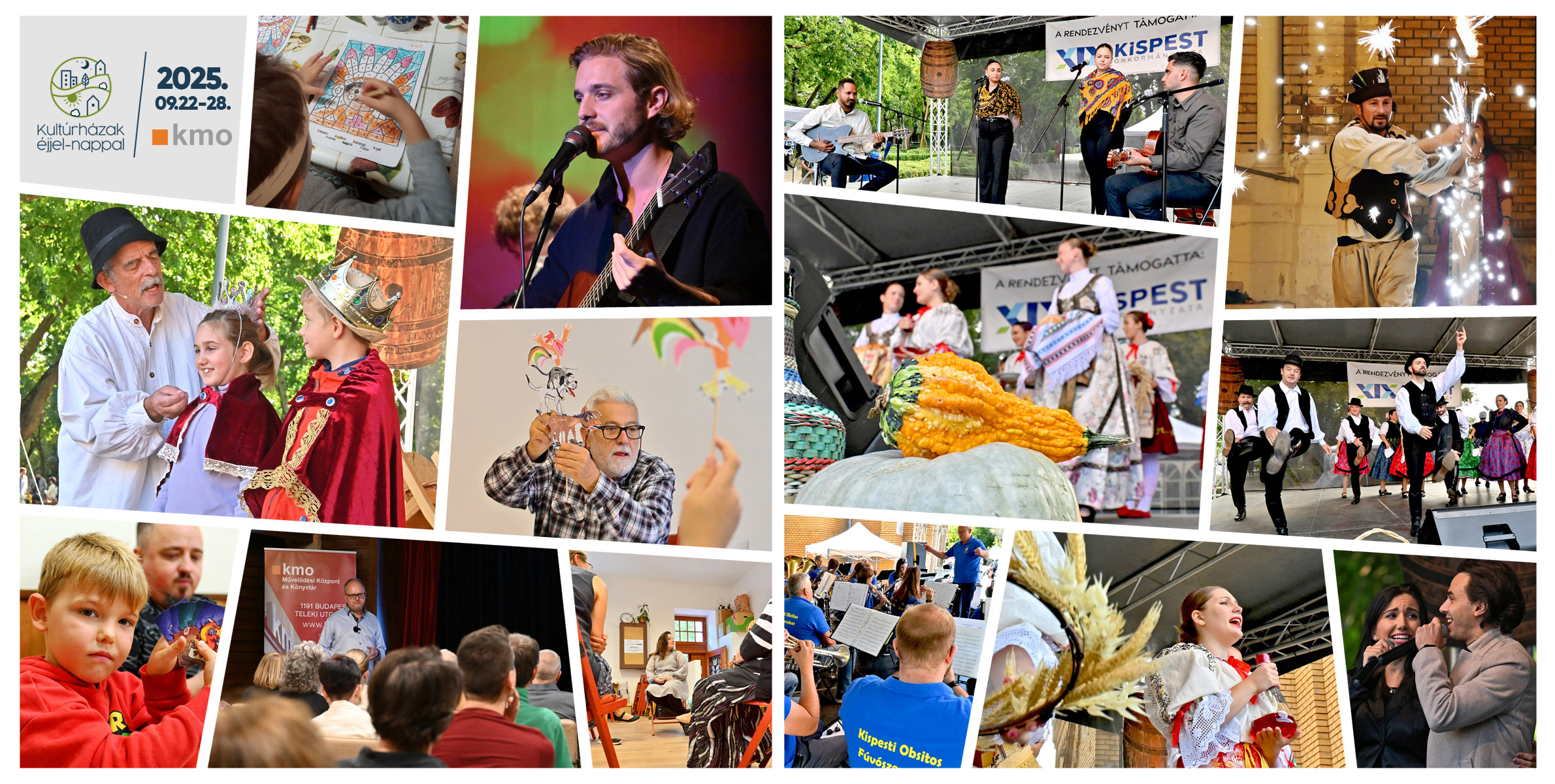 Szeptember 22. és 28. között a kispesti közönség igazi kulturális kavalkádban vehetett részt: a Kultúrházak éjjel-nappal országos programsorozat keretében minden nap más-más műfaj, élmény és közösségi alkalom várta az érdeklődőket. A rendezvények sora jól mutatta, mennyire sokszínű és befogadó a KMO és tagintézményeinek kínálata.