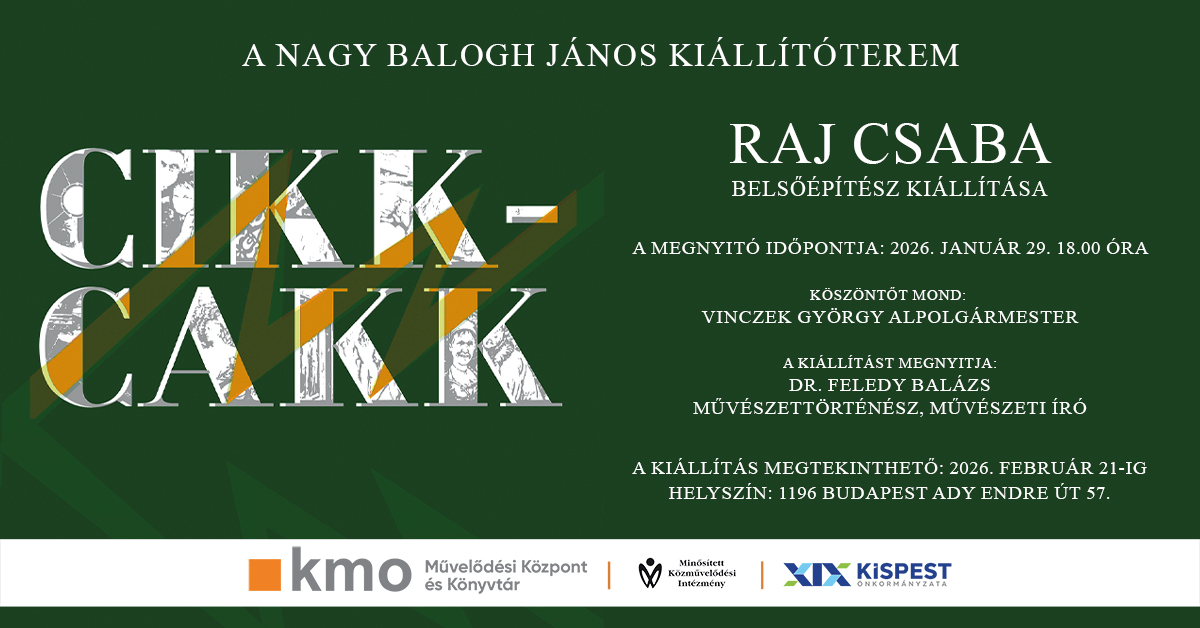 A CIKK-CAKK című tárlat január 29-én nyitja meg kapuit a Nagy Balogh János Kiállítótérben, ahol Raj Csaba izgalmas és lendületes művei várják a látogatókat 18 és 19 óra között.