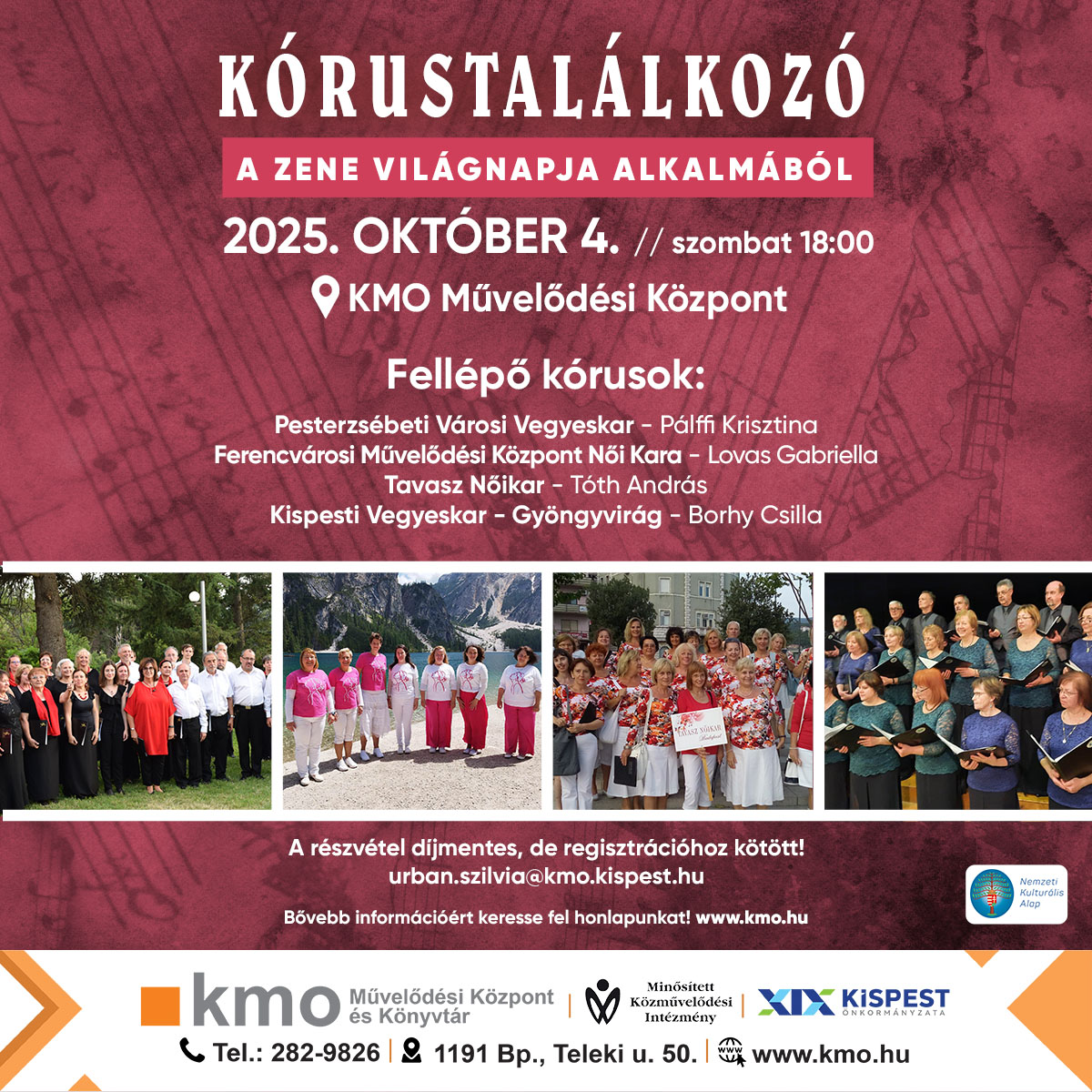 A reszvétel díjmentes, de regisztrációhoz kötött: urban.szilvia@kmo.kispest.hu